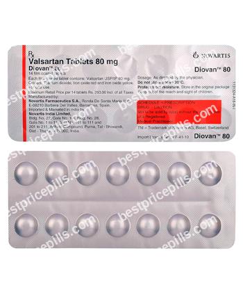 This medication is a peripheral vasodilatator with a hypotension effect. It specifically blocks angiotensin I receptors. Results of Valsartan activity may be observed in 2 hours after its intake, maximal effect is reached in 4-6 hours. Duration of its actions is over 24 hours. Valsartan is used to treat chronic heart failure (NYHA class III-IV). The medication in particular is prescribed after heart attacks.